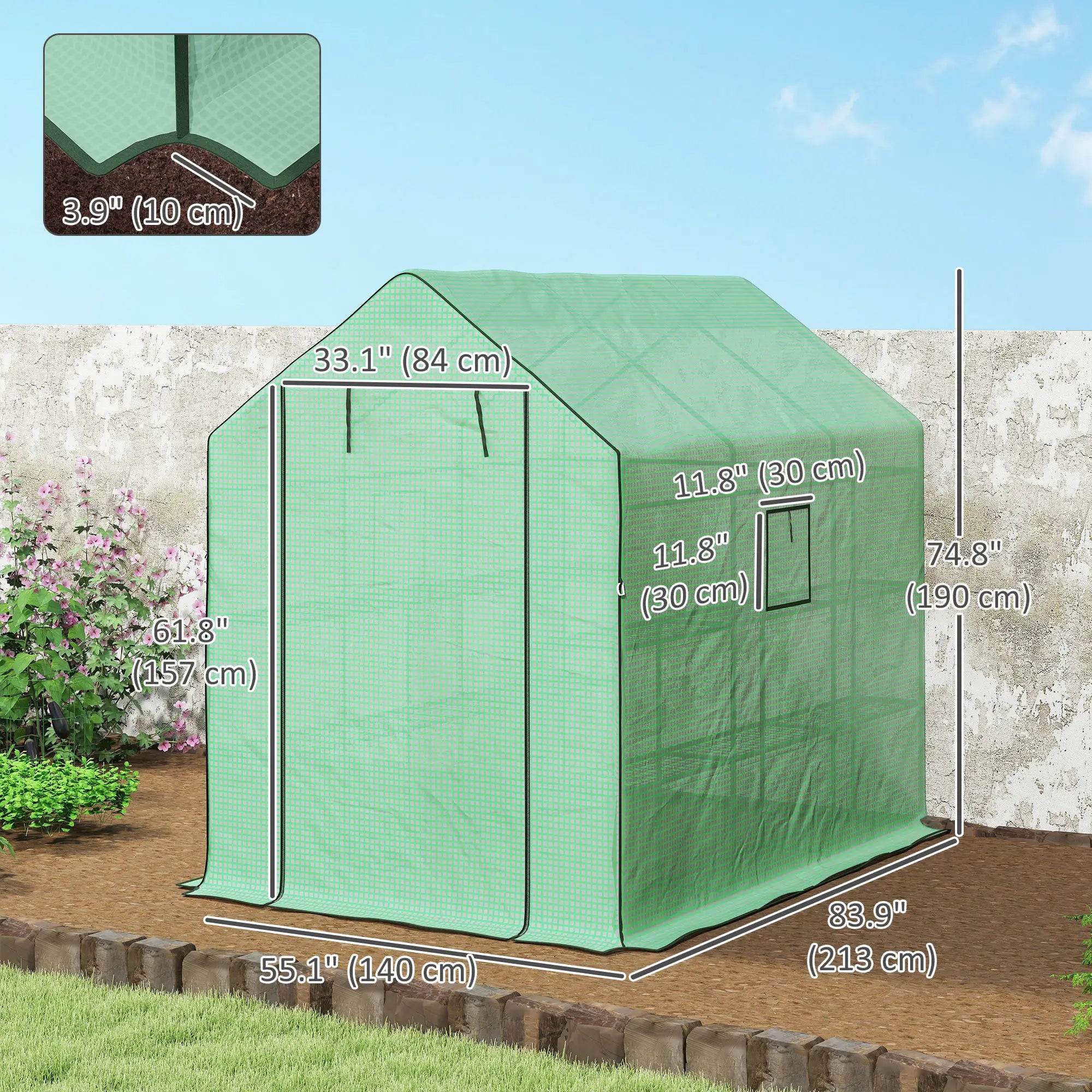 - 213 x 140cm walk-in greenhouse with shelves offers ample growing space