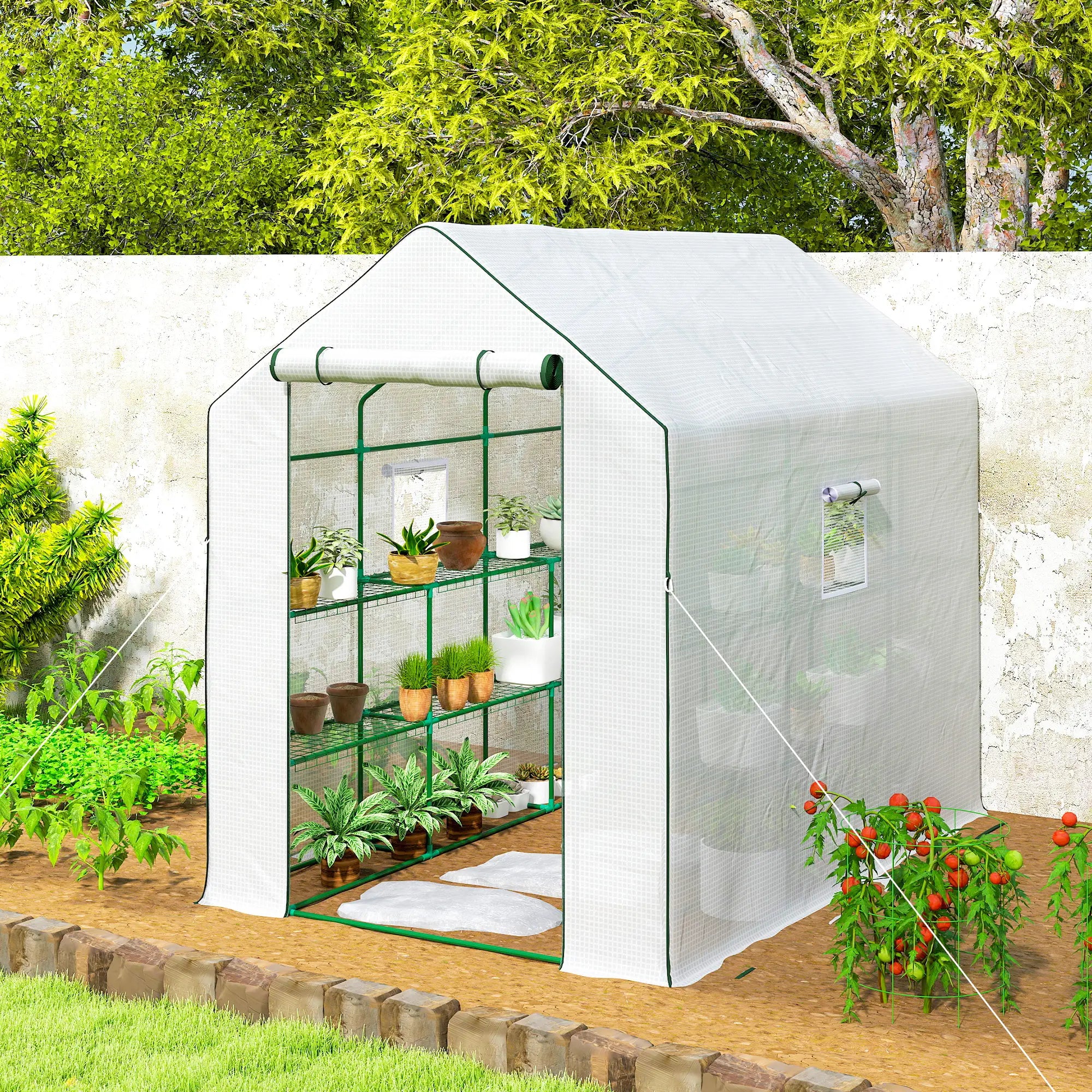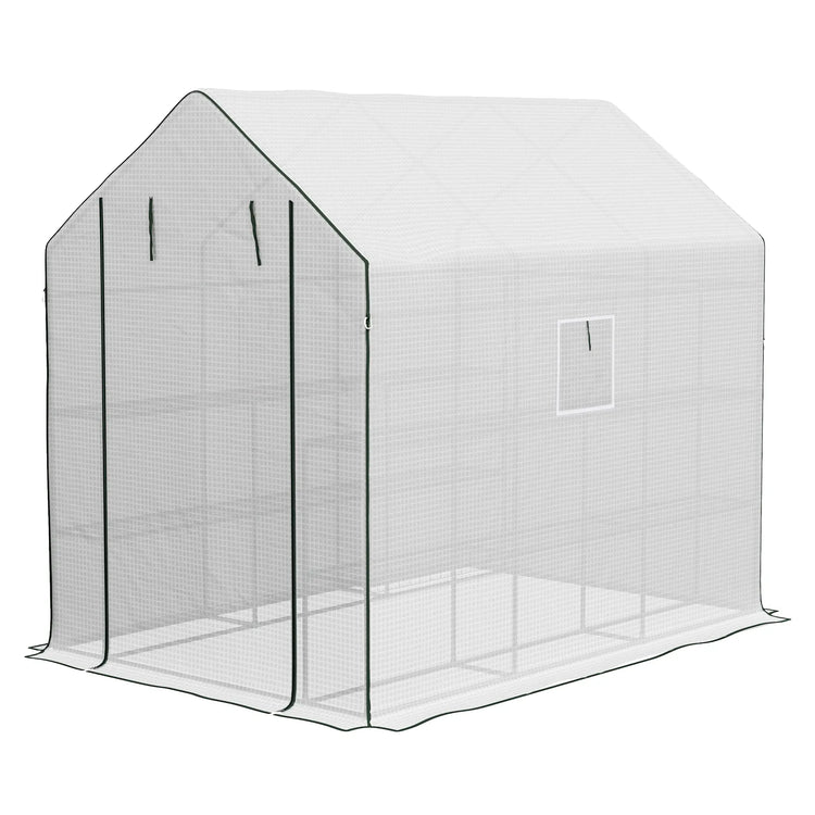 Walk-In Greenhouse, 3 Tier, Roll-Up Door, Mesh Windows, 140 x 213 x 190 cm, White