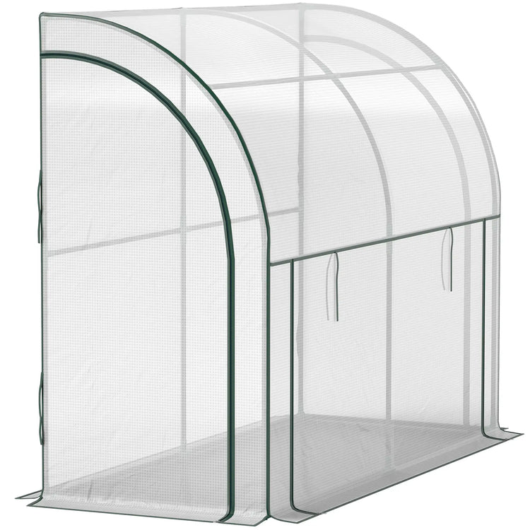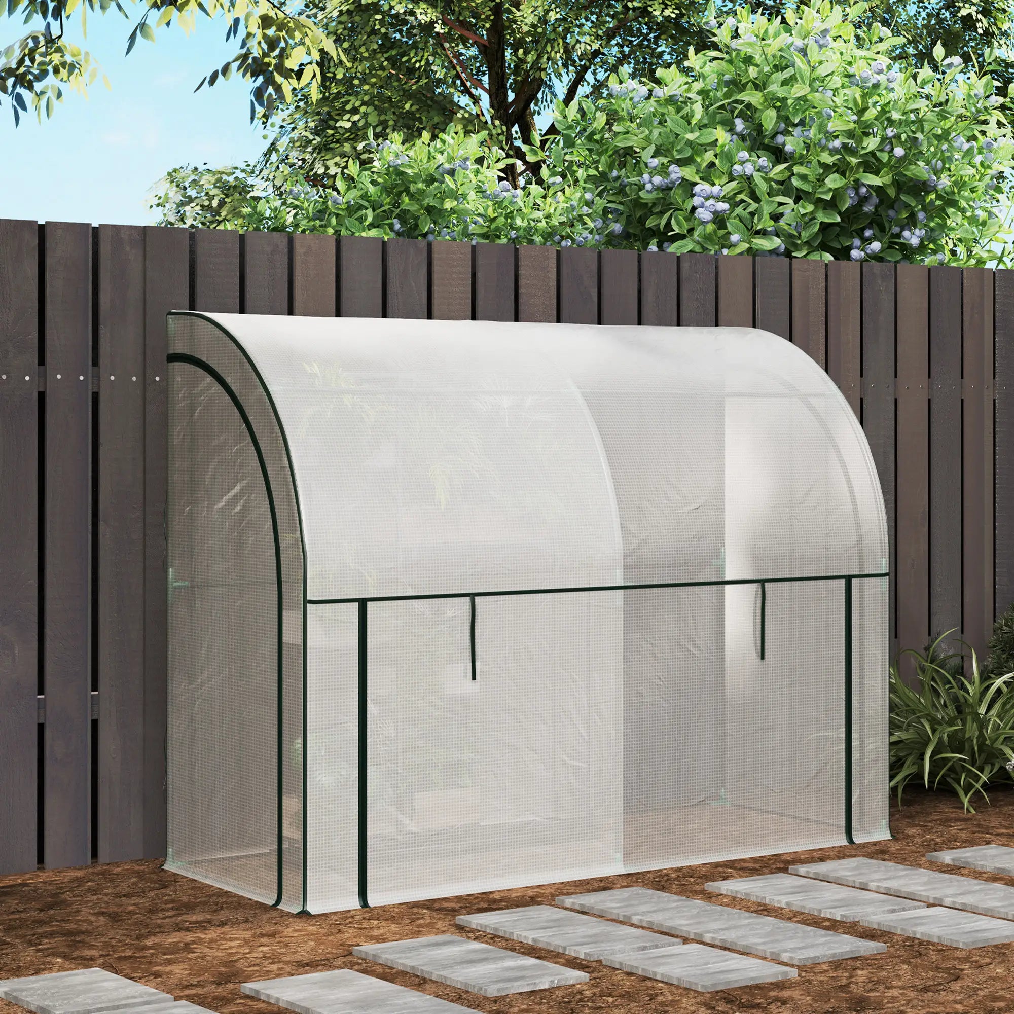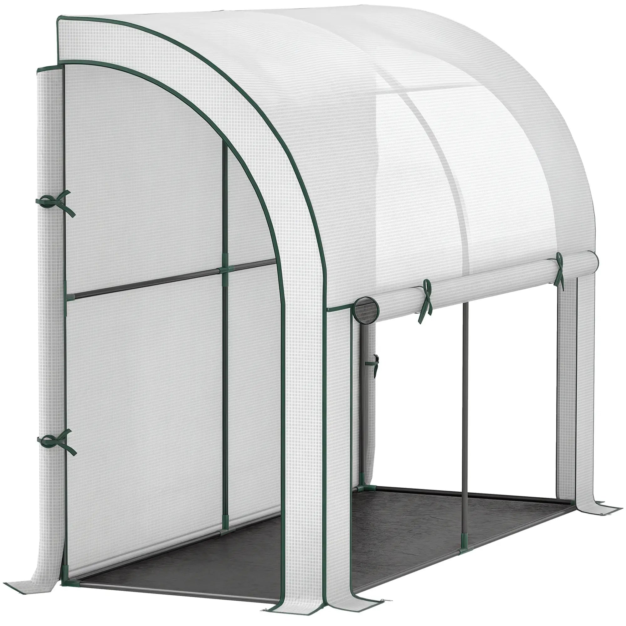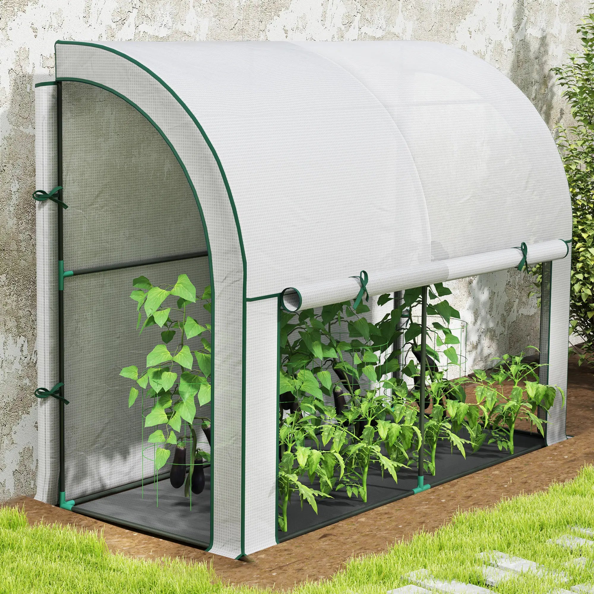 Walk-In Lean-To Greenhouse, 7' x 3' x 5', Zipper Roll-Up Doors, White