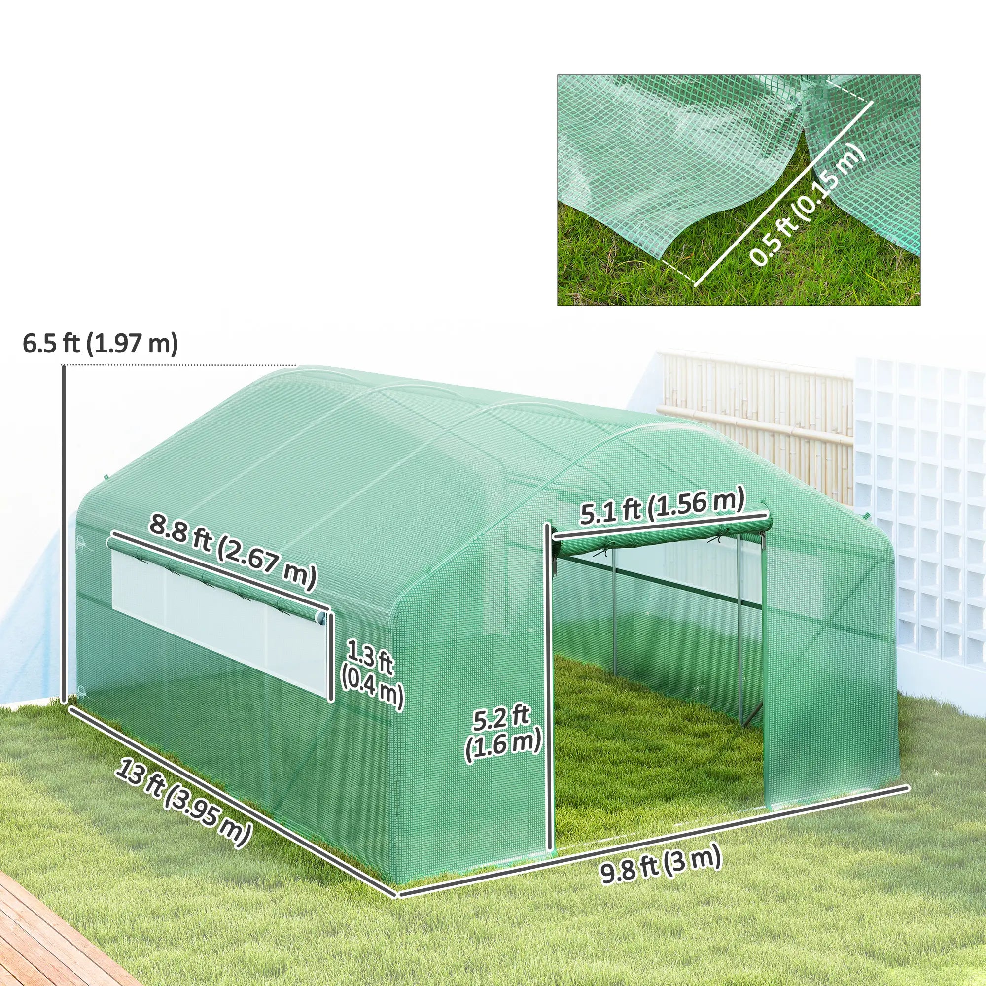 Walk-in Tunnel Greenhouse, Galvanized Steel Frame, 13' x 10' x 6.5', Green
