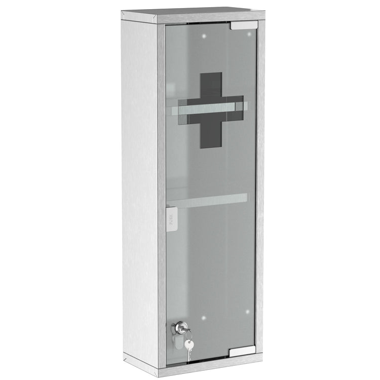 - Features three-tier shelves for organized storage of medicines and first aid supplies.