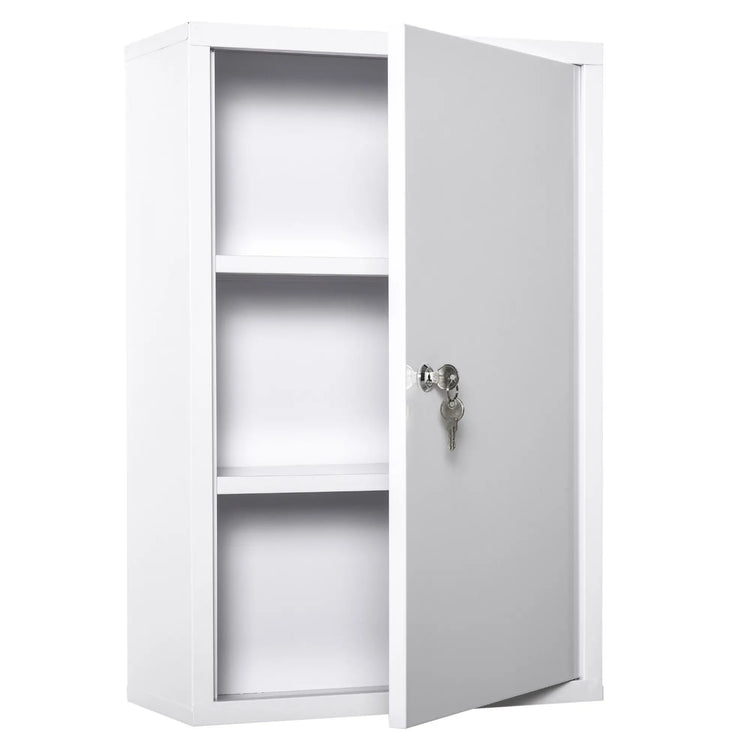 Wall Mount Medicine Cabinet, 3 Tier Steel, Lockable with 2 Keys, White