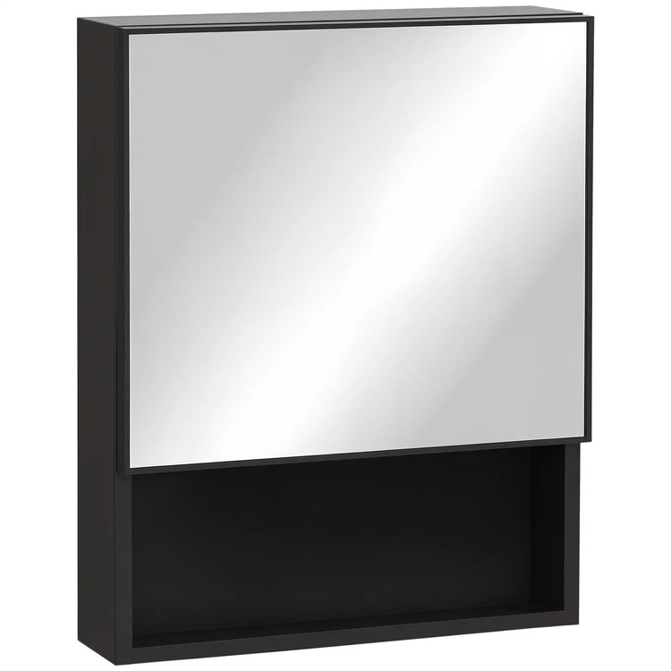 Wall-Mounted Medicine Cabinet, Single Door with Shelves, Stainless Steel Frame, Black