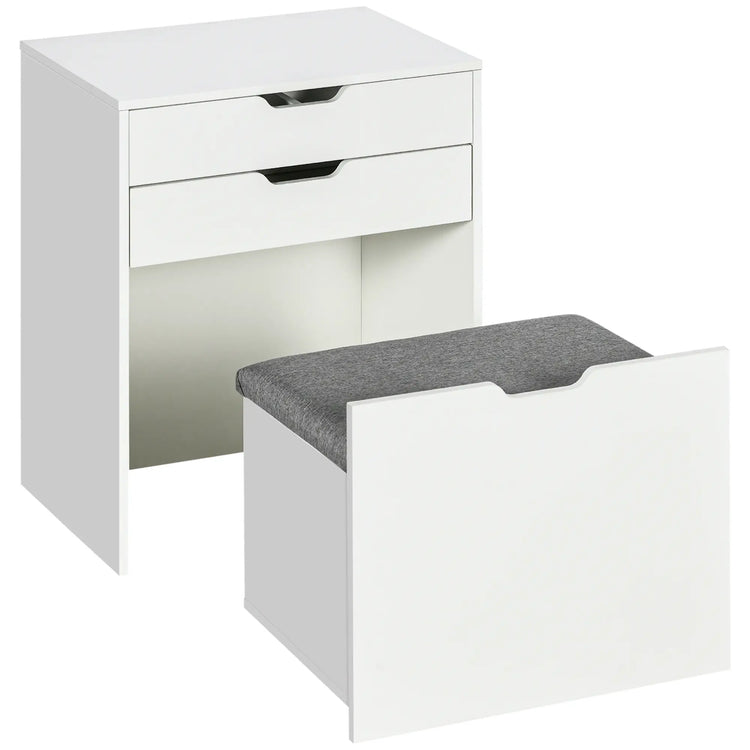 White Vanity Set with Flip Top Mirror, Desk with Stool, Drawer, White