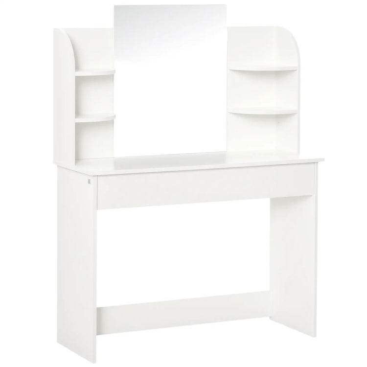 Wood Dressing Table With Makeup Mirror, Big Drawers, Open Shelf, White