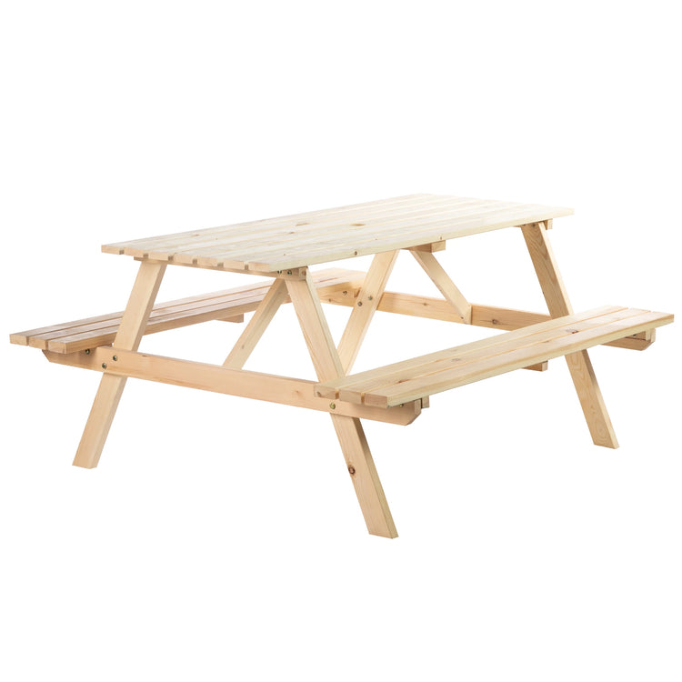 Enhance your outdoor gatherings with this charming fir wood picnic table set, perfect for family picnics or gatherings with friends. Its slatted design ensures efficient water drainage, while the umbrella hole offers shade on sunny days.
