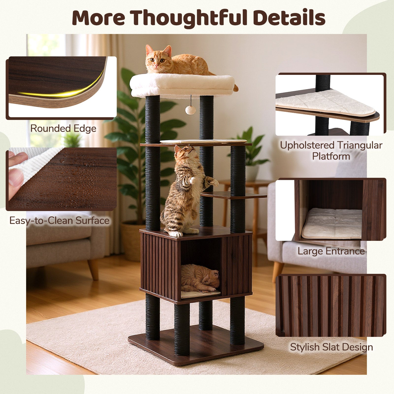 Multi-Level Cat Tree: This stable cat tree comes with 6 levels, which encourages natural climbing and exploring behaviors in cats. Besides, the thickened board and sturdy supporting posts allow cats to climb and play safely among multiple platforms.