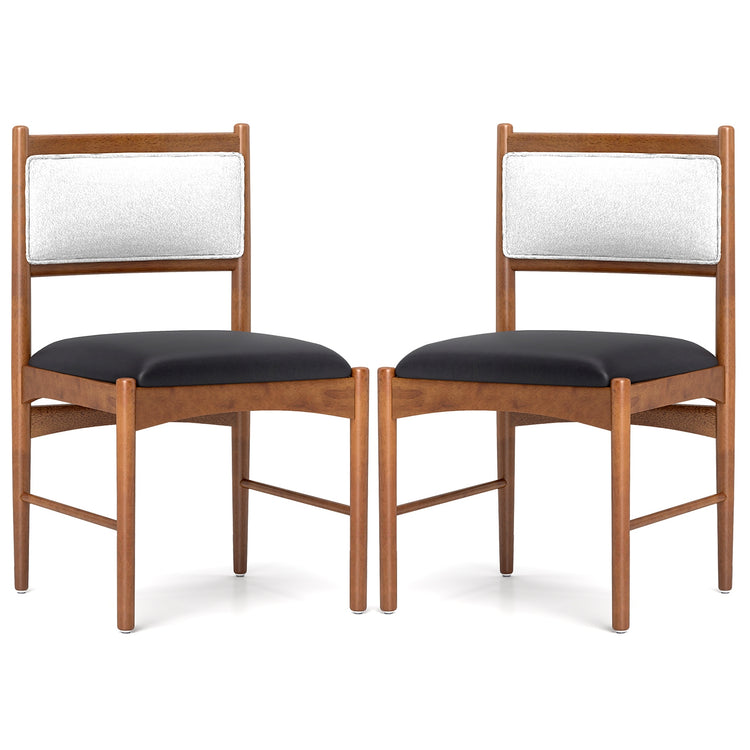 Wooden Dining Chair Set of 2 with Rubber Wood Frame and Faux Sherpa Backrest, Walnut