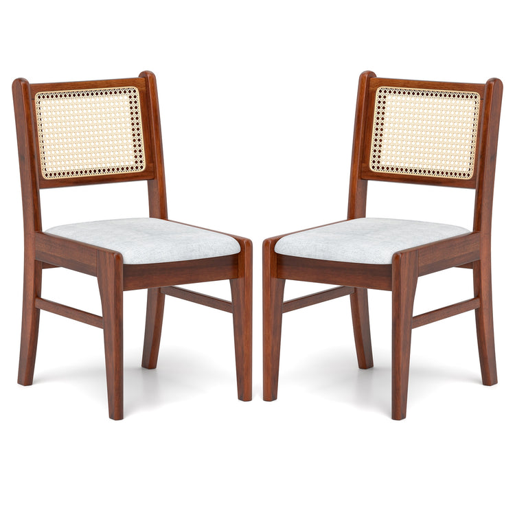 Wooden Kitchen Chairs with Cane Back Rubber Wood Frame and Padded Seat, Coffee