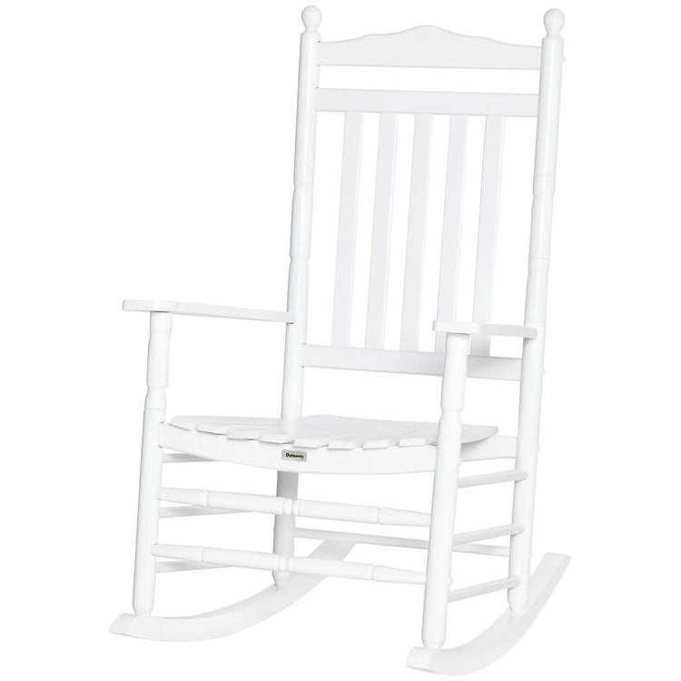 Wooden Outdoor Rocking Chair, Patio Chair with Slatted Back, White