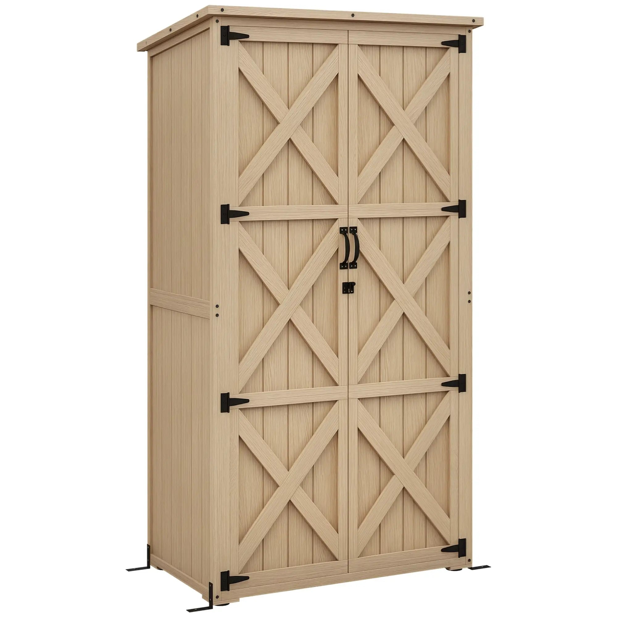 Wooden Outdoor Storage Cabinet, Garden Shed, Waterproof Asphalt Roof, Lockable Doors, Natural