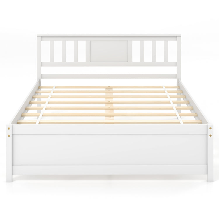 Wooden Platform Bed with Headboard and Wood Slat Support White-Full Size, White