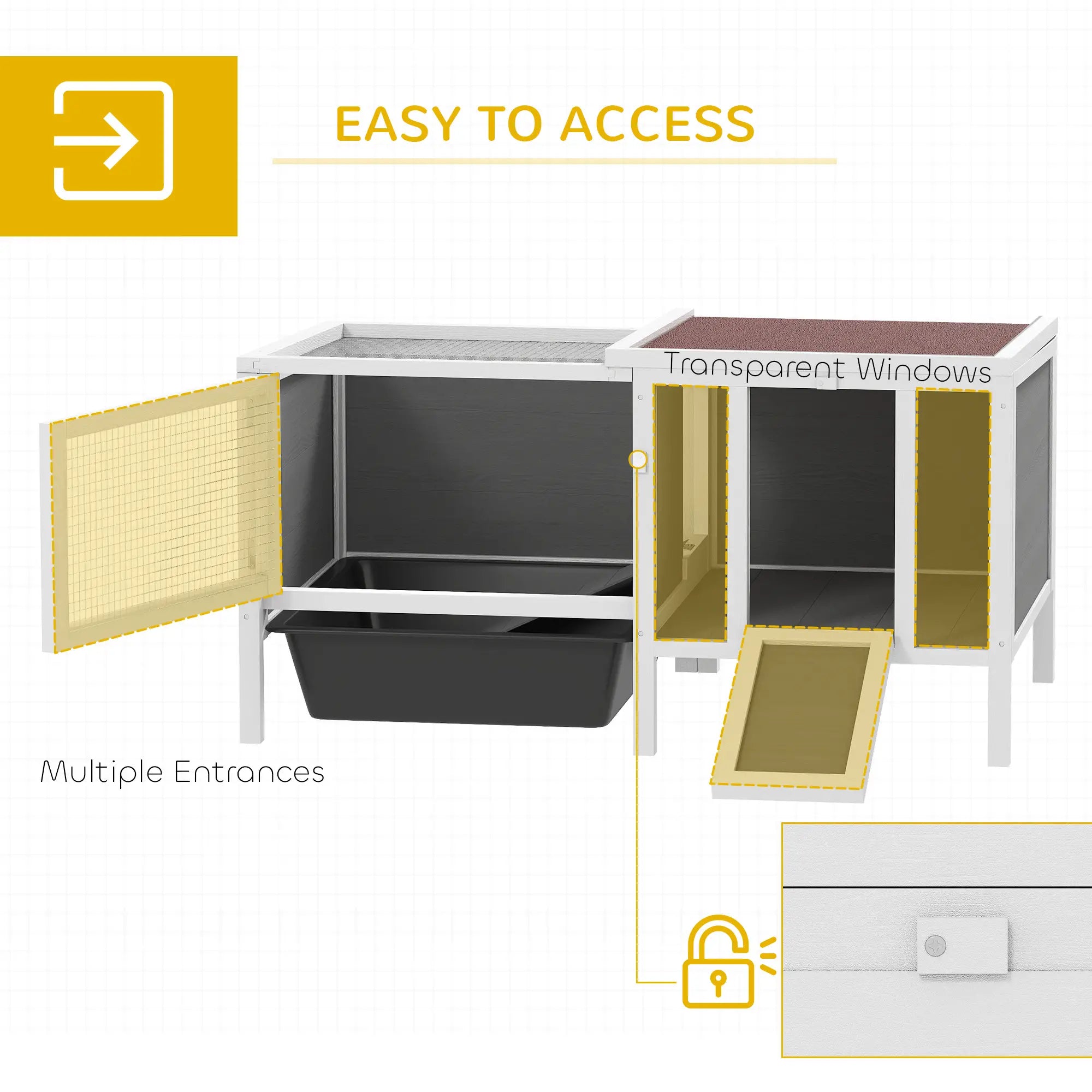 Wooden Rabbit Hutch With Run, Openable Top, Pull Out Tray, Ramp, Water-Resistant Roof, Grey